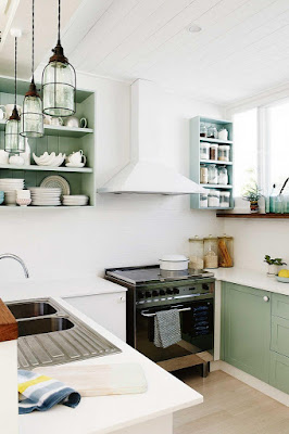 a casa não é muito grande, mesmo como eu gosto. luminosa, a sala tem uma parede envidraçada que dá para o jardim e que faria as minhas delícias. a cozinha, um mimo, com os armários verdes e tudo aquilo que é necessário à mão. mas eu suspiro é pelo quarto, cujo aproveitamento do espaço foi inteligente e de bom gosto. a acrescentar a tudo isto, as cores neutras dos principais elementos contrastam na perfeição com os acessórios de decoração. elegante, sem ser pretensiosa.
